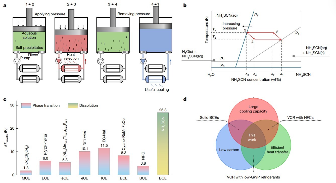 A team of researchers led by Prof. LI Bing from the Institute of Metal Research of the Chinese Academy of Sciences have introduced a new refrigeration concept: barocaloric effect (BCE) at dissolution, which uses pressure-tuned dissolution heat.