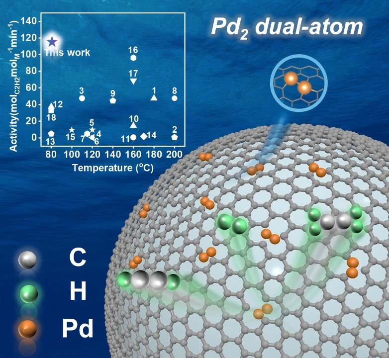 A research team has developed a Pd₂ dual-atom catalyst that achieves both high activity and high selectivity in acetylene semihydrogenation, overcoming a long-standing challenge in the purificatio...