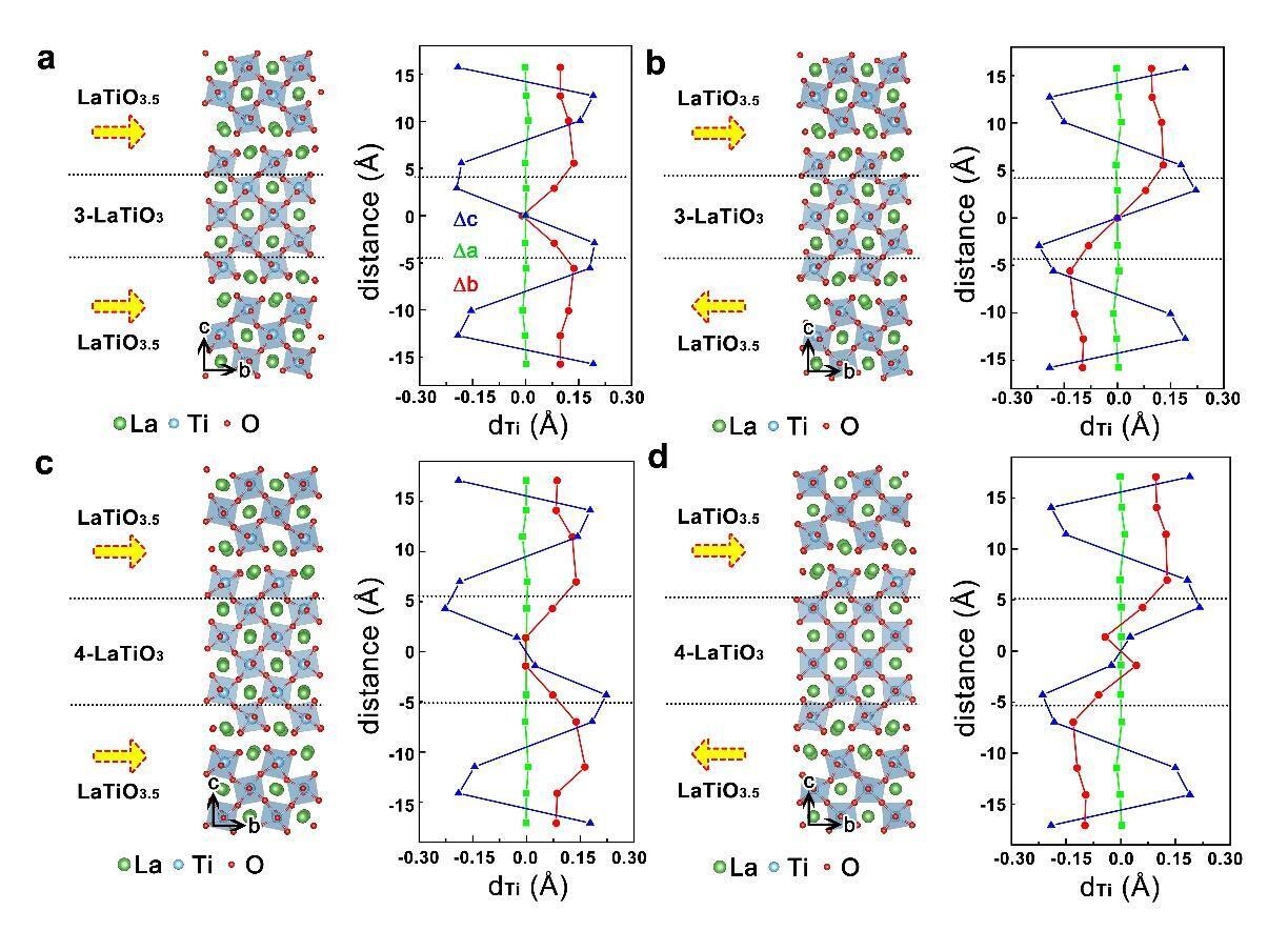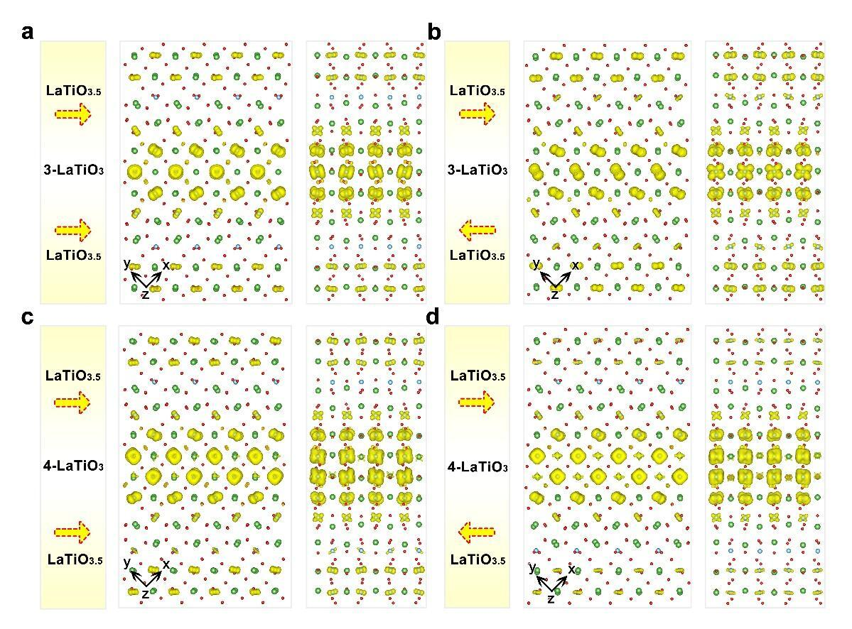 Atomic structures of the LaTiO3.5/m-LaTiO₃/LaTiO3.5 multilayer heterostructure under different polarization configurations. (Image by IMR)